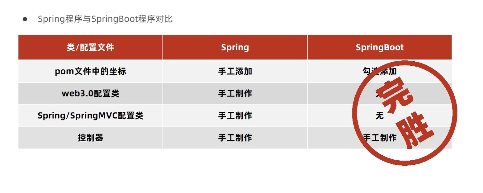 SpringBoot 程序优点恰巧就是针对 Spring 的缺点