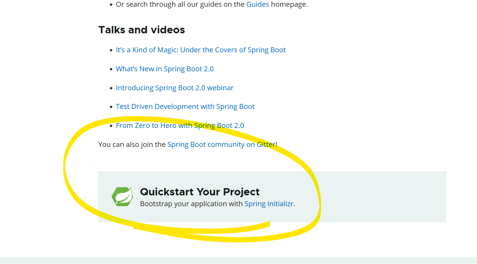 进入到 SpringBoot 官网后拖到最下方就可以看到如下内容